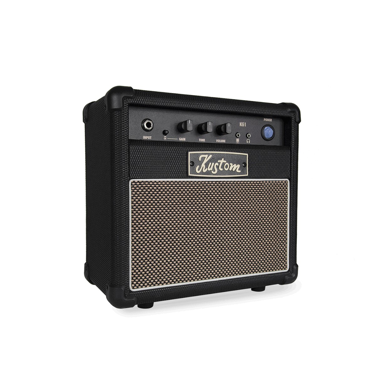 This little combo delivers great tone in your practice space. The 10W Kustom KG1 combo guitar amplifier may be small but it delivers rock-solid tones with rugged dependability and intuitive operation. The KG1 combo amplifier boasts a 6” Kustom speaker. The KG1 offers sweet, full-bodied, clean tones. And when the Gain switch is activated, you can dial in anything from Classic Rock tones to the heaviest, modern Metal sounds.