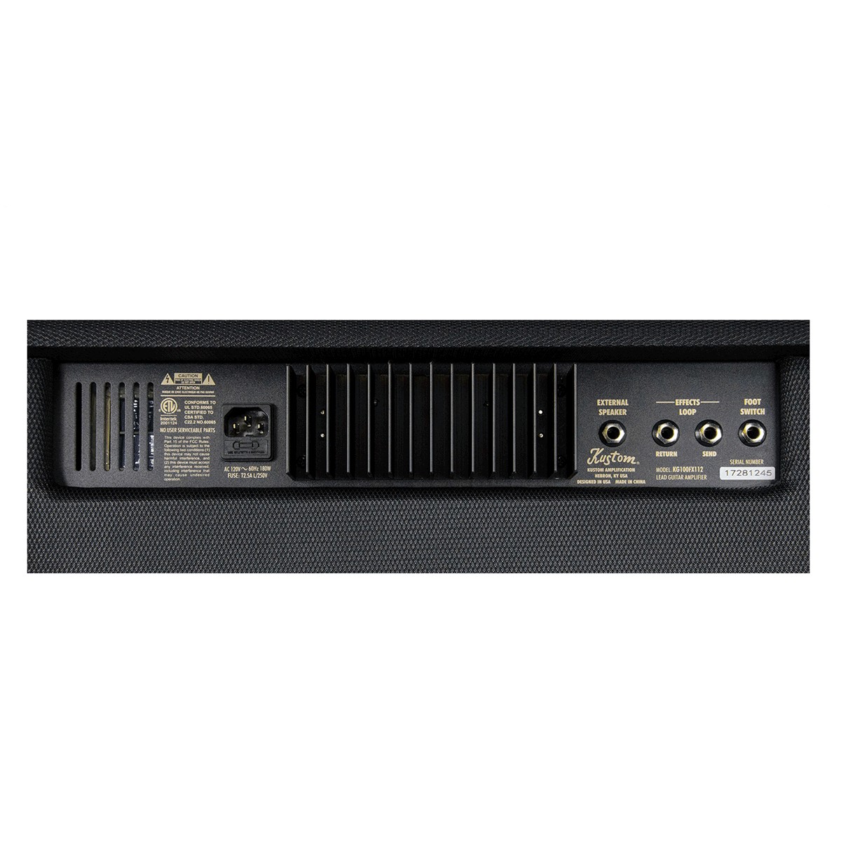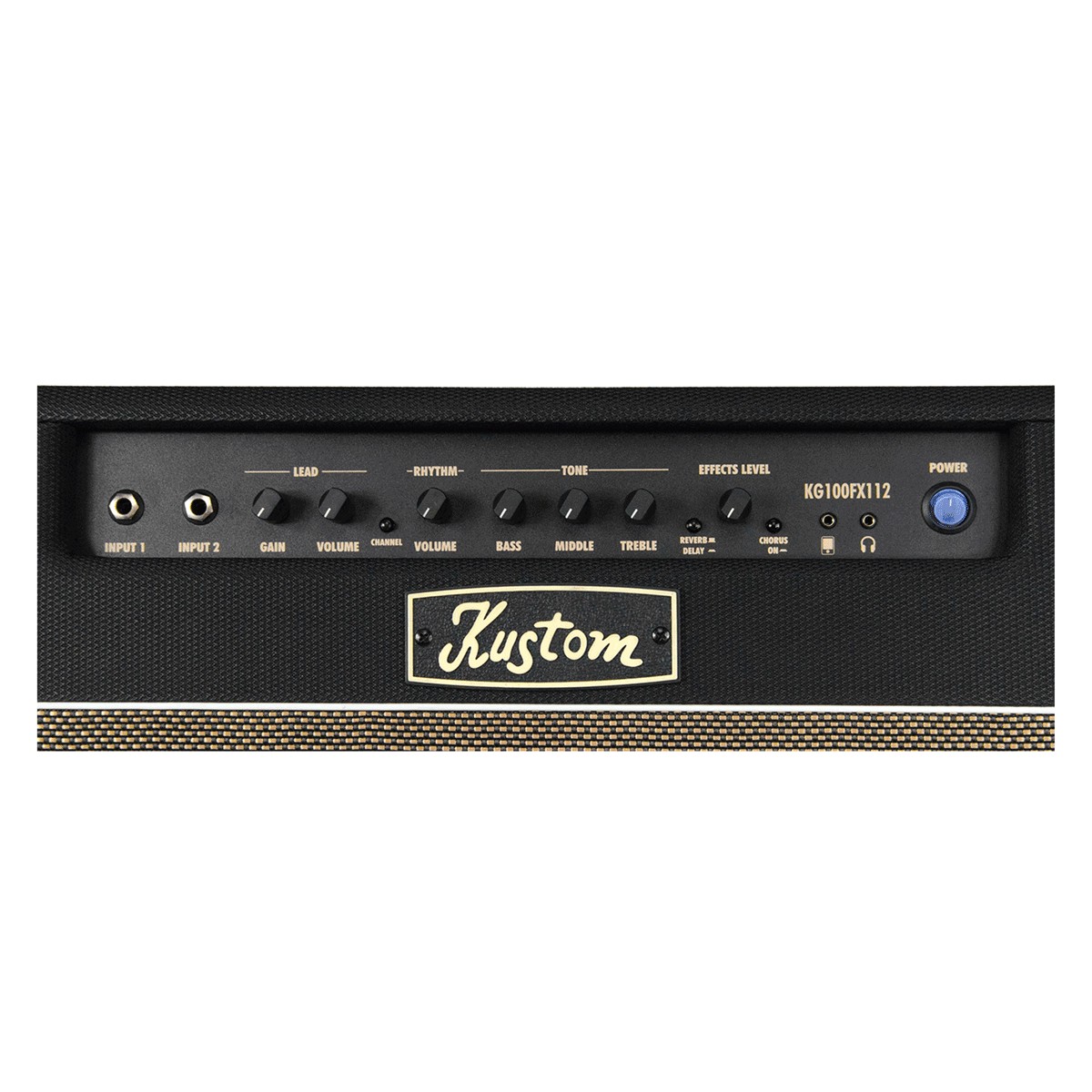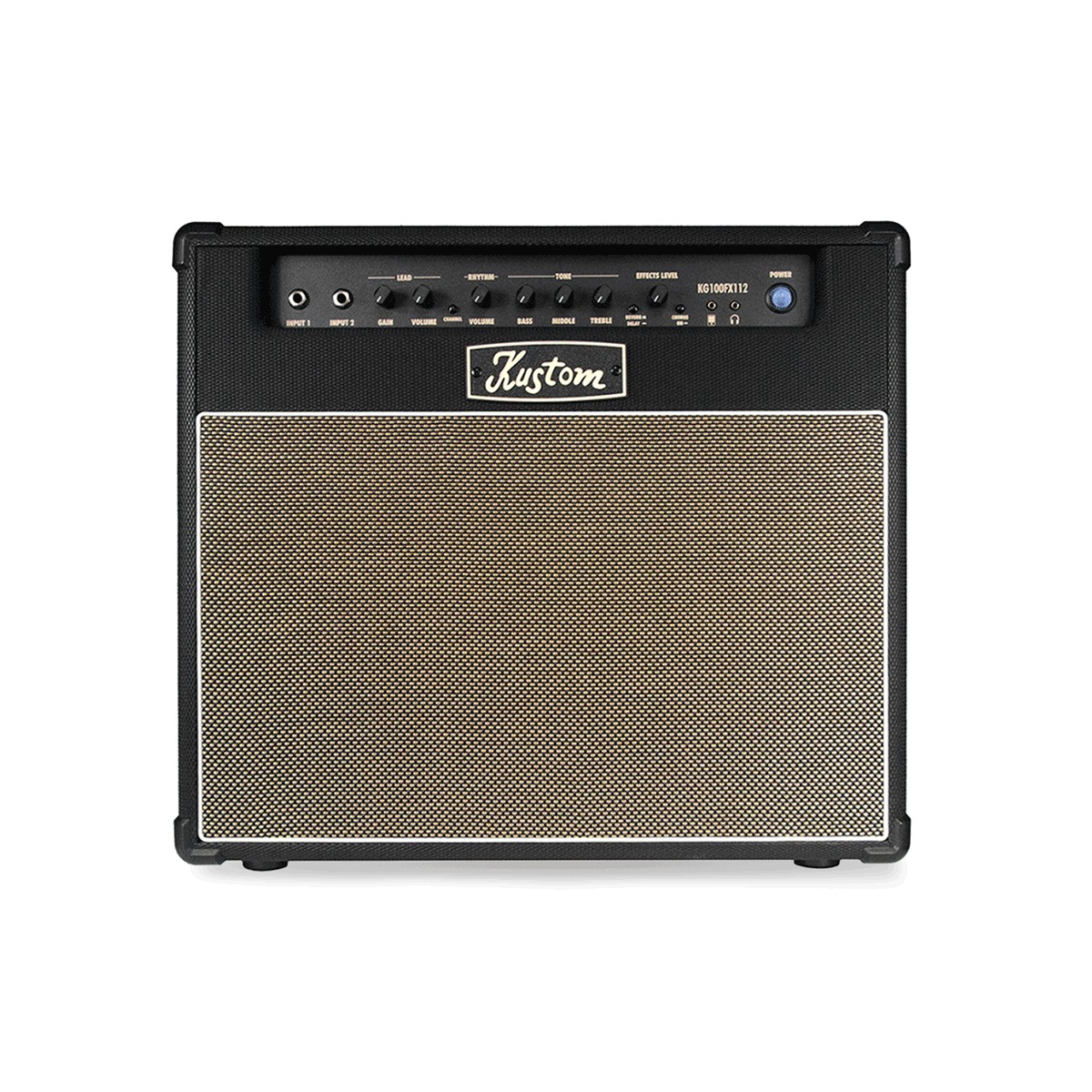 The Kustom KG100FX112 is a two-channel combo amp offering 100 watts of clear, classic tone perfect for a variety of musical styles. It’s equipped with a single 12-in. Kustom speaker. In addition to its two channels (Rhythm and Lead), it includes onboard digital effects (reverb, delay and chorus). The KG100FX112 features a speaker out jack, allowing you to hook up an external cab. You can also jam to songs or practice silently thanks to its auxiliary in, and headphone out jacks.