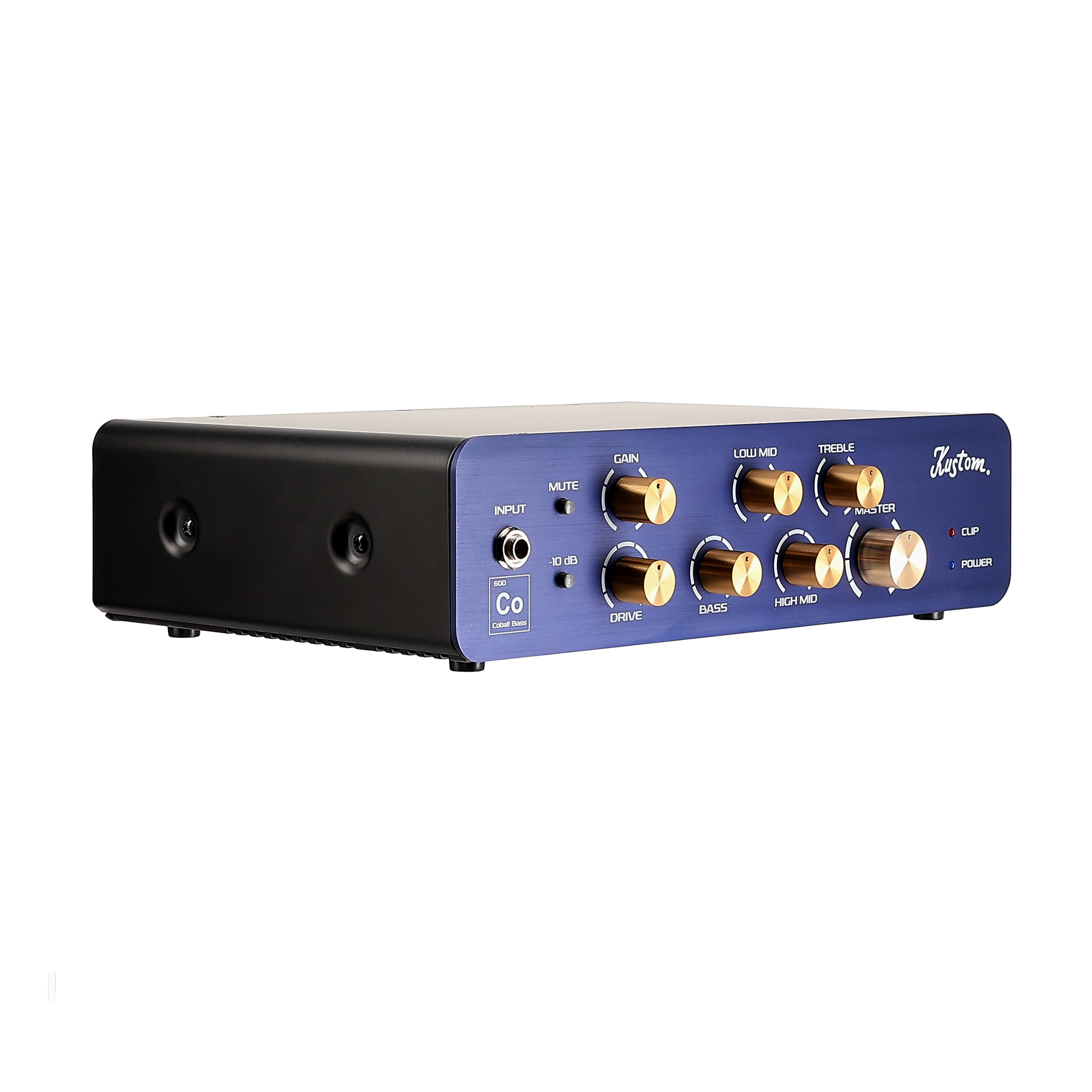 This portable bass amplifier head delivers a massive 600 watts of thunder! COBALT 600 was designed for the bass player who needs both great tone and stunning performance in one light weight package. The COBALT 600 uses Kustoms proprietary power amplifier platform to achieve phenomenal tone and EQ flexibility. This powerful head features a built-in limiter that monitors the voltage rails ensuring your sound will not encounter any harsh switching distortion while retaining great tone at loud volumes. The preamp features Gain, Drive (distortion), Bass, Low Mid, High Mid, Treble and Master Volume controls giving the player extreme versatility. The back panel features an XLR balanced line output (DI volume knob, pre, post and ground lift switches) effects loop, footswitch jack (mute & drive), tuner in jack and two Speakon speaker output jacks. The COBALT 600 is the perfect option for the serious bass player.